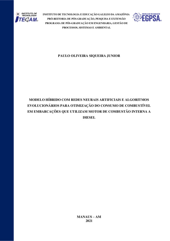 MODELO HÍBRIDO COM REDES NEURAIS ARTIFICIAIS E ALGORITMOS EVOLUCIONÁRIOS PARA OTIMIZAÇÃO DO CONSUMO DE COMBUSTÍVEL EM EMBARCAÇÕES QUE UTILIZAM MOTOR DE COMBUSTÃO INTERNA A DIESEL