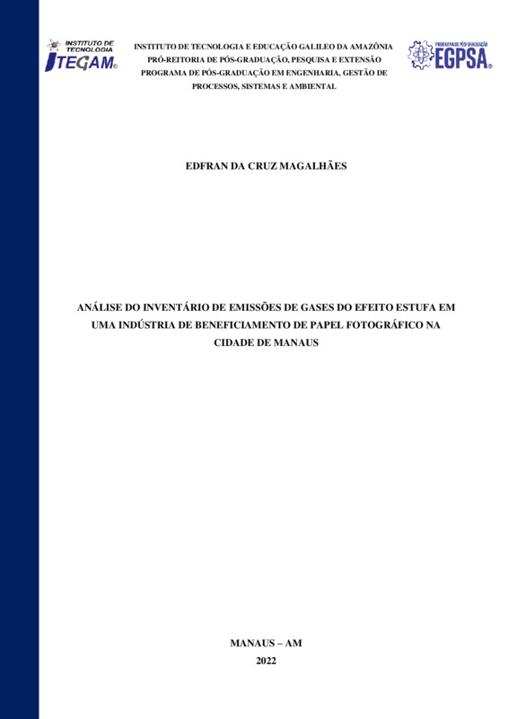 ANÁLISE DO INVENTÁRIO DE EMISSÕES DE GASES DO EFEITO ESTUFA EM UMA INDÚSTRIA DE BENEFICIAMENTO DE PAPEL FOTOGRÁFICO NA CIDADE DE MANAUS