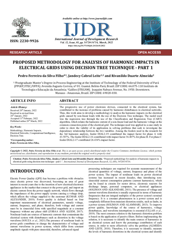 PROPOSED METHODOLOGY FOR ANALYSIS OF HARMONIC IMPACTS IN ELECTRICAL GRIDS USING DECISION TREE TECHNIQUE - PART 1