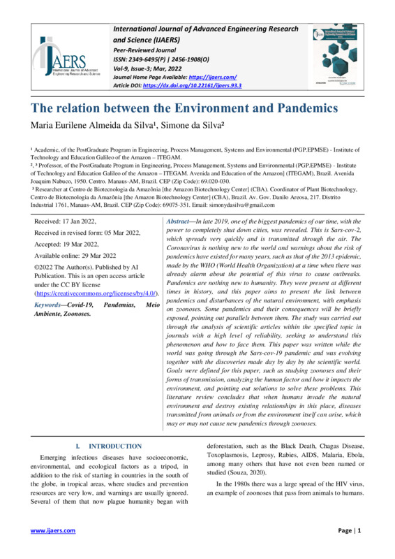 THE RELATION BETWEEN THE ENVIRONMENT AND PANDEMICS