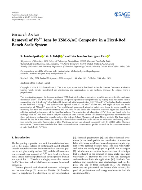 Removal of Pb2+ Ions by ZSM-5/AC Composite in a Fixed-Bed Bench Scale System