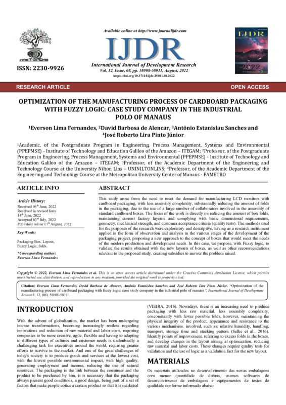 OPTIMIZATION OF THE MANUFACTURING PROCESS OF CARDBOARD PACKAGING WITH FUZZY LOGIC: CASE STUDY COMPANY IN THE INDUSTRIAL POLO OF MANAUS