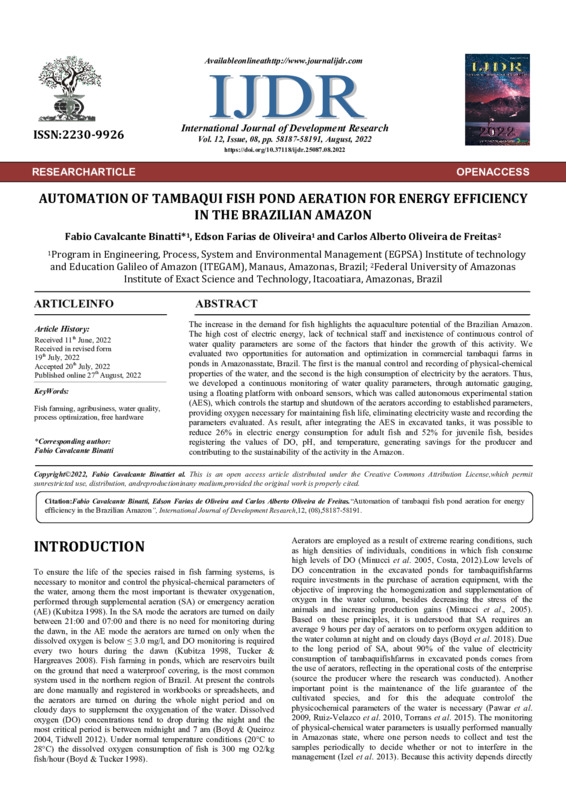 AUTOMATION OF TAMBAQUI FISH POND AERATION FOR ENERGY EFFICIENCY IN THE BRAZILIAN AMAZON