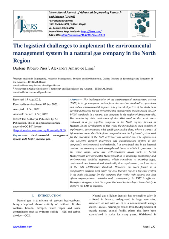 THE LOGISTICAL CHALLENGES TO IMPLEMENT THE ENVIRONMENTAL MANAGEMENT SYSTEM IN A NATURAL GAS COMPANY IN THE NORTH REGION