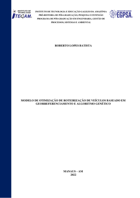 MODELO DE OTIMIZAÇÃO DE ROTEIRIZAÇÃO DE VEÍCULOS BASEADO EM GEORREFERENCIAMENTO E ALGORITMO GENÉTICO