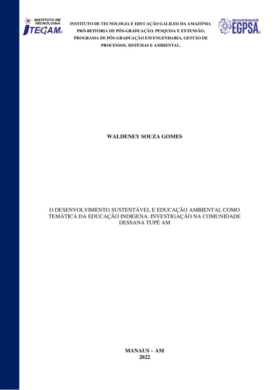 O DESENVOLVIMENTO SUSTENTÁVEL E EDUCAÇÃO AMBIENTAL COMO TEMÁTICA DA EDUCAÇÃO INDIGENA: INVESTIGAÇÃO NA COMUNIDADE DESSANA TUPÉ AM