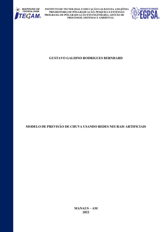 MODELO DE PREVISÃO DE CHUVA USANDO REDES NEURAIS ARTIFICIAIS