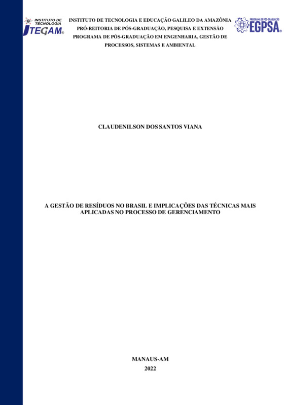 A GESTÃO DE RESÍDUOS NO BRASIL E IMPLICAÇÕES DAS TÉCNICAS MAIS APLICADAS NO PROCESSO DE GERENCIAMENTO
