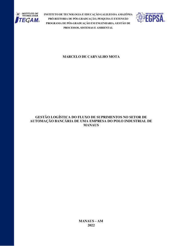 GESTÃO LOGÍSTICA DO FLUXO DE SUPRIMENTOS NO SETOR DE AUTOMAÇÃO BANCÁRIA DE UMA EMPRESA DO POLO INDUSTRIAL DE MANAUS.