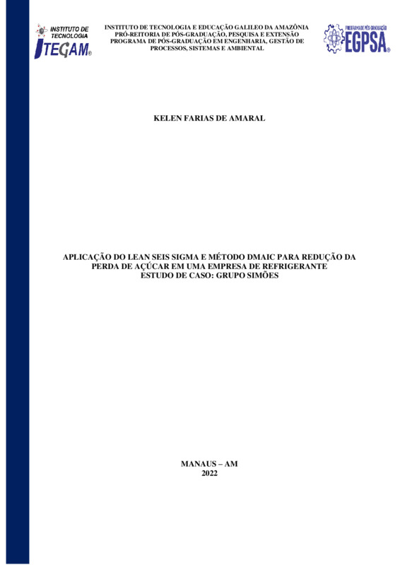 APLICAÇÃO DO LEAN SEIS SIGMA E MÉTODO DMAIC PARA REDUÇÃO DA PERDA DE AÇÚCAR EM UMA EMPRESA DE REFRIGERANTE ESTUDO DE CASO: GRUPO SIMÕES