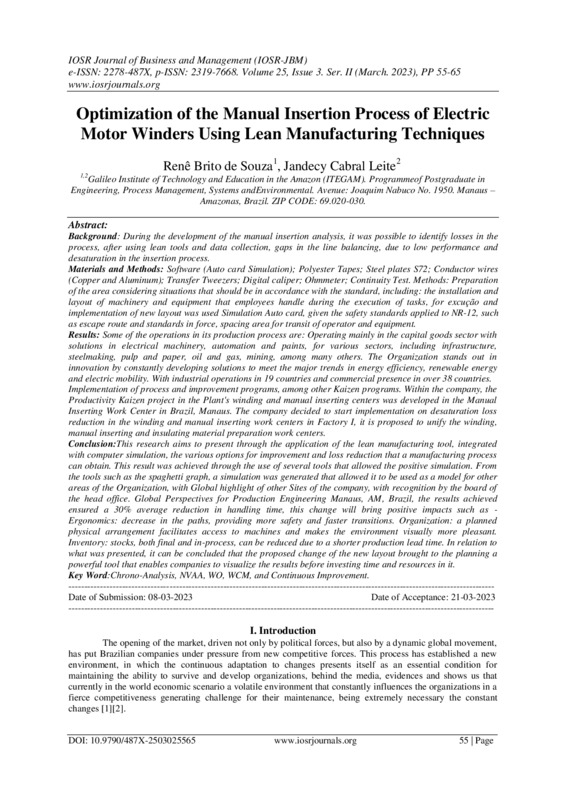 OPTIMIZATION OF THE MANUAL INSERTION PROCESS OF ELECTRIC MOTOR WINDERS USING LEAN MANUFACTURING TECHNIQUES