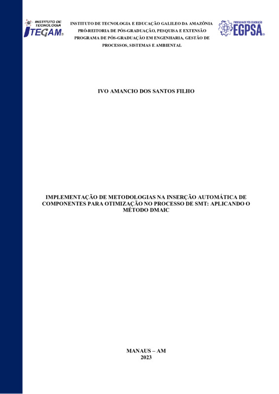 IMPLEMENTAÇÃO DE METODOLOGIAS NA INSERÇÃO AUTOMÁTICA DE COMPONENTES PARA OTIMIZAÇÃO NO PROCESSO DE SMT: APLICANDO O MÉTODO DMAIC
