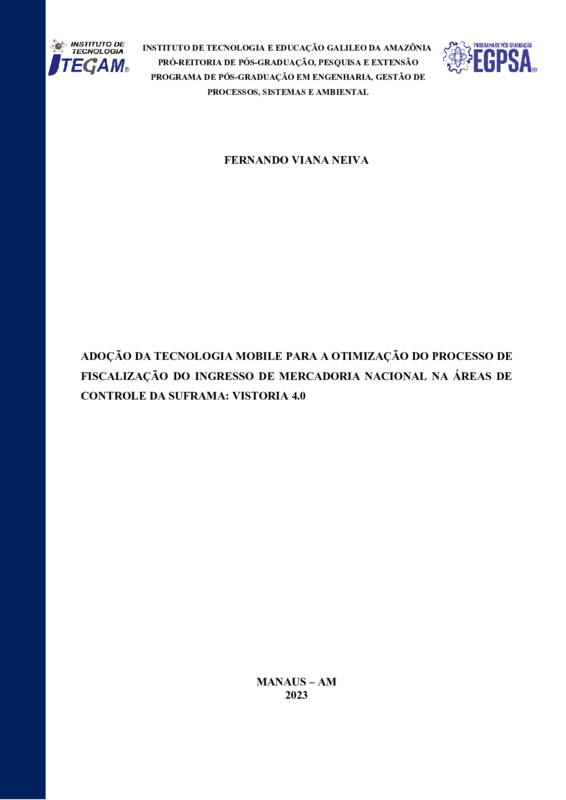 ADOÇÃO DA TECNOLOGIA MOBILE PARA A OTIMIZAÇÃO DO PROCESSO DE FISCALIZAÇÃO DO INGRESSO DE MERCADORIA NACIONAL NA ÁREAS DE CONTROLE DA SUFRAMA: VISTORIA 4.0
