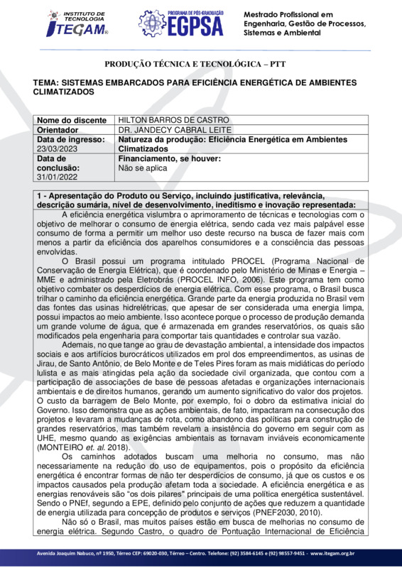 SISTEMAS EMBARCADOS PARA EFICIÊNCIA ENERGÉTICA DE AMBIENTES CLIMATIZADOS