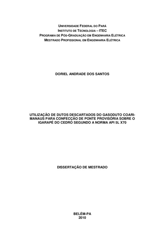 UTILIZAÇÃO DE DUTOS DESCARTADOS DO GASODUTO COARIMANAUS PARA CONFECÇÃO DE PONTE PROVISÓRIA SOBRE O IGARAPÉ DO CEDRO SEGUNDO A NORMA API 5L X70