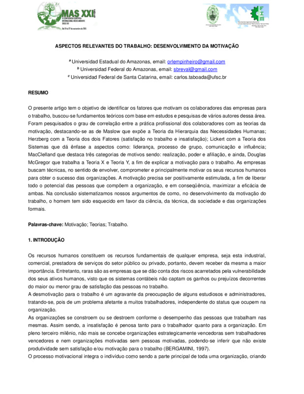 Palavras-chave:Motivação;Teorias;Trabalho.