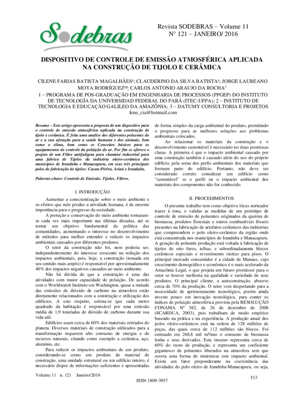 Palavras-chave: Controle de Emissão. Tijolos. Filtros.