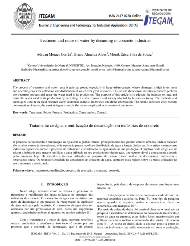 Palavras-chave: tratamento, reutilização, processo de produção, o consumo, controle.