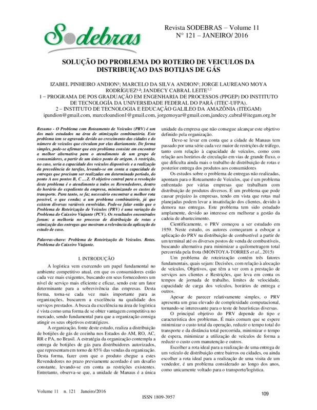 Palavras-chave: Problema de Roteirização de Veículos. Rotas. Problema do Caixeiro Viajante.