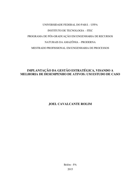 Implantação da gestão estratégica, visando a melhoria de desempenho de ativos: um estudo de caso