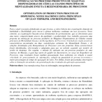 Para a atual economia globalizada em que vivemos, a sobrevivência das organizações depende da habilidade e flexibilidade para inovar e efetuar melhorias contínuas em seus processos. Nesse contexto, as organizações buscam novas ferramentas de gerenciamento, que as direcionem para uma maior competitividade através da qualidade e produtividade. Este trabalho apresenta uma proposta de otimização no processo produtivo de Máquinas Dispensadoras de Cédulas usando princípios da Mentalidade Enxuta e da Reengenharia de Processos. O método foi criado através de características encontradas em duas metodologias existentes da Mentalidade Enxuta e de soluções desenhadas pela Reengenharia de Processos com este propósito. Estas características foram identificadas, selecionadas e adaptadas para uso no método seguindo um modelo de gestão de mudança. Em seguida, o método foi aplicado em um processo produtivo de uma empresa de Manaus, a qual faço parto do quadro de funcionários, no cargo de Engenheiro de Processos, seus resultados foram medidos apresentando boas melhorias em relação à maior velocidade de processamento de informações, redução da quantidade de pessoas necessárias e maior porcentagem de tempo de agregação de valor. Por último, foram apresentadas observações sobre as limitações do método e da generalização dos resultados da aplicação apresentada.
