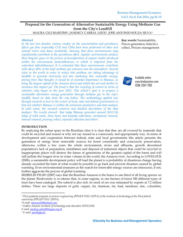 Proposal for the Generation of Alternative Sustainable Energy Using Methane Gas from the City's Landfill