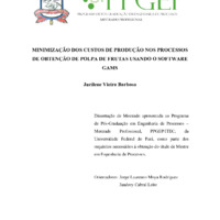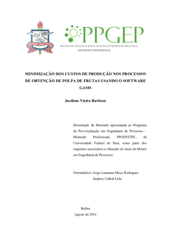 MINIMIZAÇÃO DOS CUSTOS DE PRODUÇÃO NOS PROCESSOS DE OBTENÇÃO DE POLPA DE FRUTAS USANDO O SOFTWARE GAMS