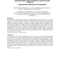 São apresentados e discutidos os resultados experimentais para 54 corpos de prova, onde o agregado miúdo areia é substituído pela lama vermelha, um subproduto gerado pela indústria de produção do alumínio, através do processo Bayer. Os ensaios realizados foram de resistência a compressão axial, resistência a compressão diametral e módulo de elasticidade. O principal objetivo do trabalho foi obter uma resistência de pelo menos 20MPa, onde esse concreto produzido com lama vermelha, de acordo com a norma brasileira, possa ser aplicado em escala industrial. Os resultados mostraram que a lama vermelha pode ser utilizada parcialmente para substituir totalmente o agregado miúdo, com mínimas alterações no ph, fornecendo resistências à compressão adequadas para obras ordinárias, porém, mais estudos são necessários para detecção de possíveis agentes químicos nocivos a saúde humana quando em contato com estes concretos.