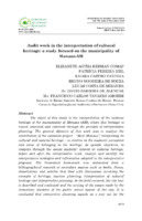 Audit work in the interpretation of cultural heritage: a study focused on the municipality of Manaus-AM Resumo O objeto deste estudo é a interpretação do patrimônio cultural do município de Manaus (AM), onde este patrimônio é levantado, analisado e avalizado por meio dos preceitos do planejamento interpretativo. O trabalho teve como objetivo geral analisar a contribuição do projeto de extensão – “Conheça Manaus”: interpretando seu patrimônio cultural e natural - com relação à percepção e o sentimento de pertencimento dos alunos para com os patrimônios. Como objetivos específicos, comparar por meio das redações o interesse dos alunos pelos patrimônios culturais, antes e após o trabalho interpretativo, analisar e identificar as estratégias interpretativas e informações adotadas na proposta interpretativa. O referencial teórico foi elaborado a partir de uma pesquisa bibliográfica em fontes secundárias como livros, teses, dissertações e artigos que tratam de discussões envolvendo os conceitos de patrimônio, planejamento turístico, interpretação do patrimônio cultural e planejamento interpretativo. Na pesquisa de campo, descreve-se e avalia a realização do city tour e a elaboração das redações realizadas pelos alunos do ensino fundamental da rede pública do município. Conclui-se que o planejamento interpretativo sinaliza como uma saída para o uso sustentável do patrimônio, pois ele estabelece uma relação entre patrimônio, visitante e comunidade oferecendo informações que o levam a revelar sua identidade. Palavras chave: Patrimônio Cultural. Planejamento Interpretativo. Manaus. Turismo. -